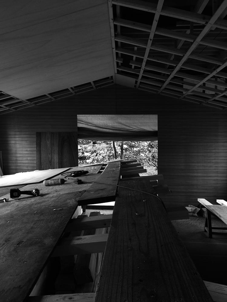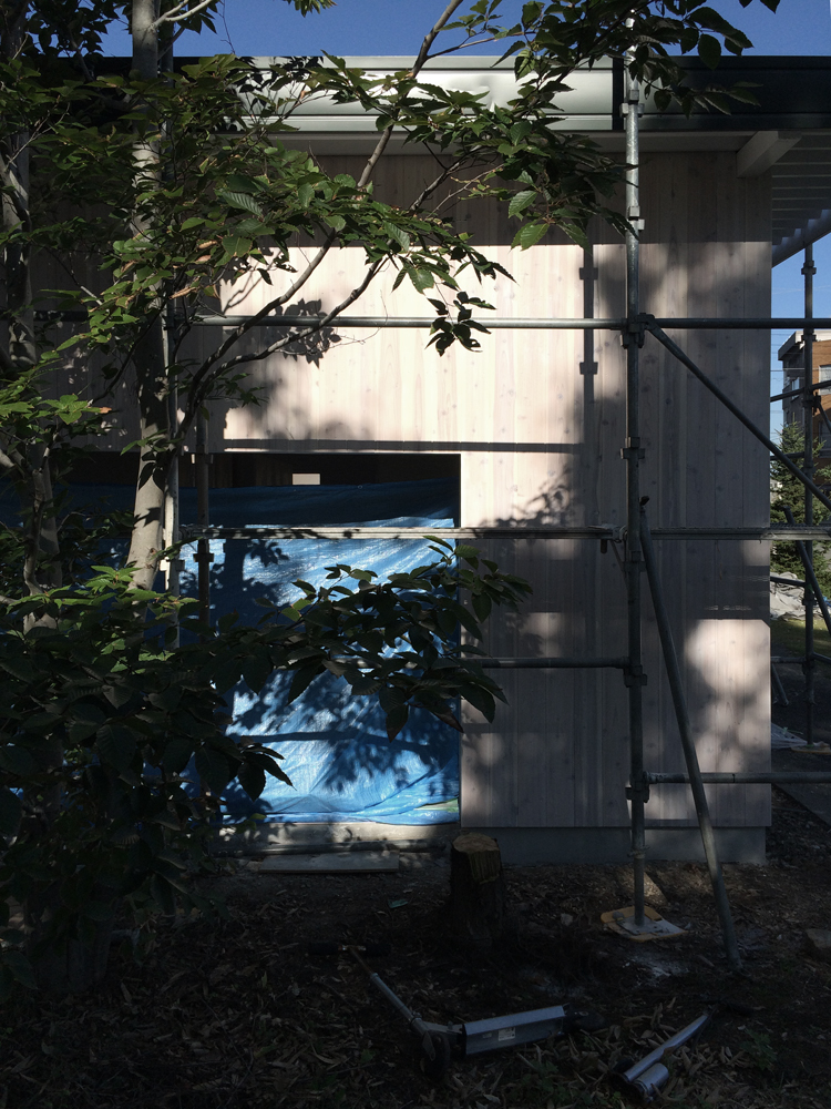 外部は羽目板張及び渋墨1回塗りまで完了。