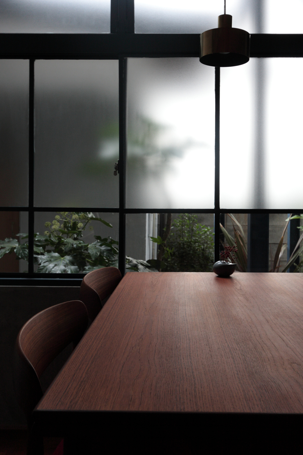 以前現場でクライアントが探してきた代物。オイルとは違う黒の表情が気に入ったので今回も使用してみた。